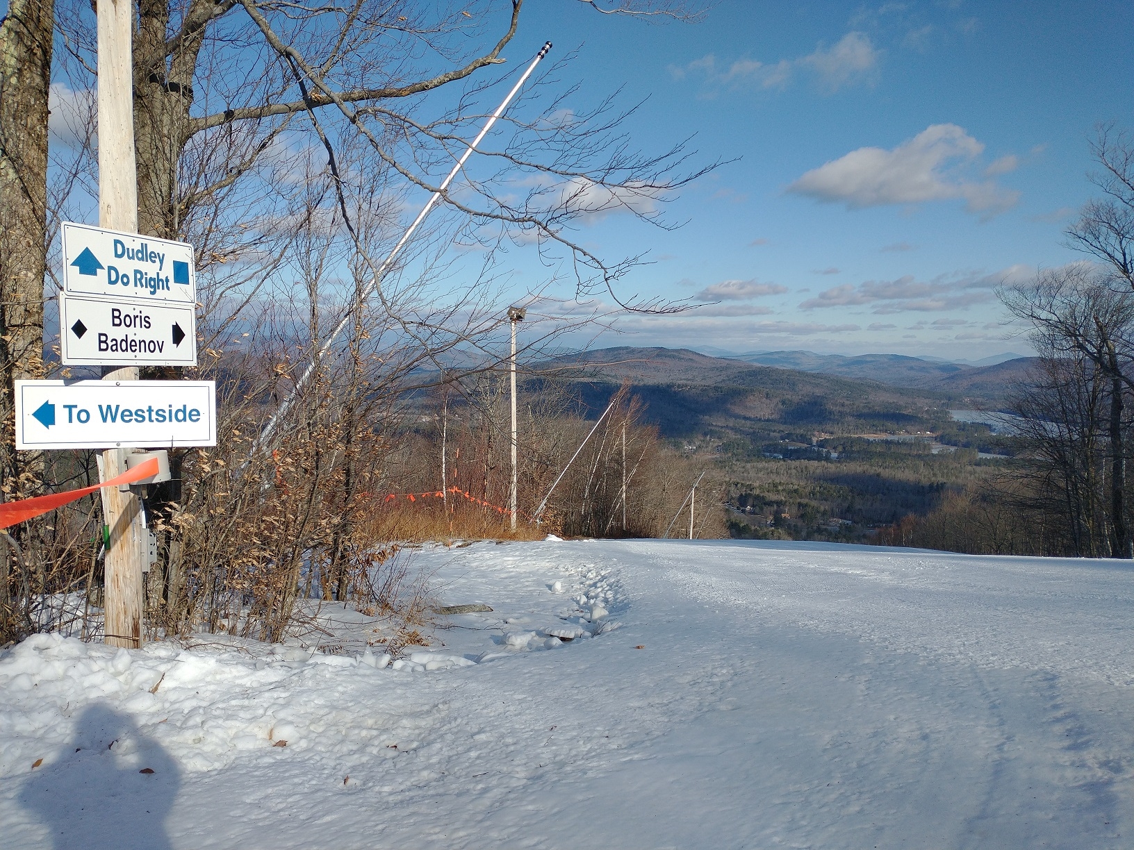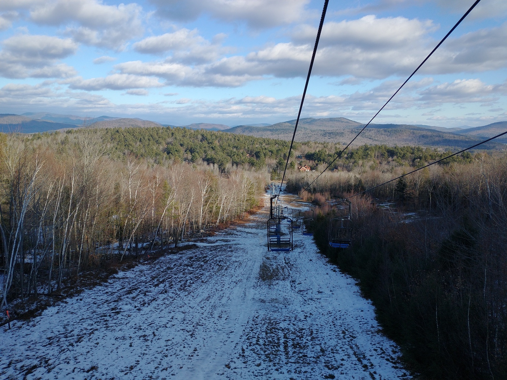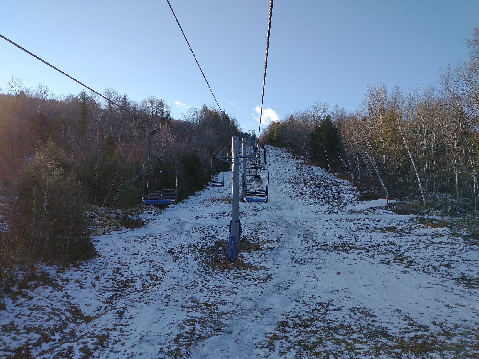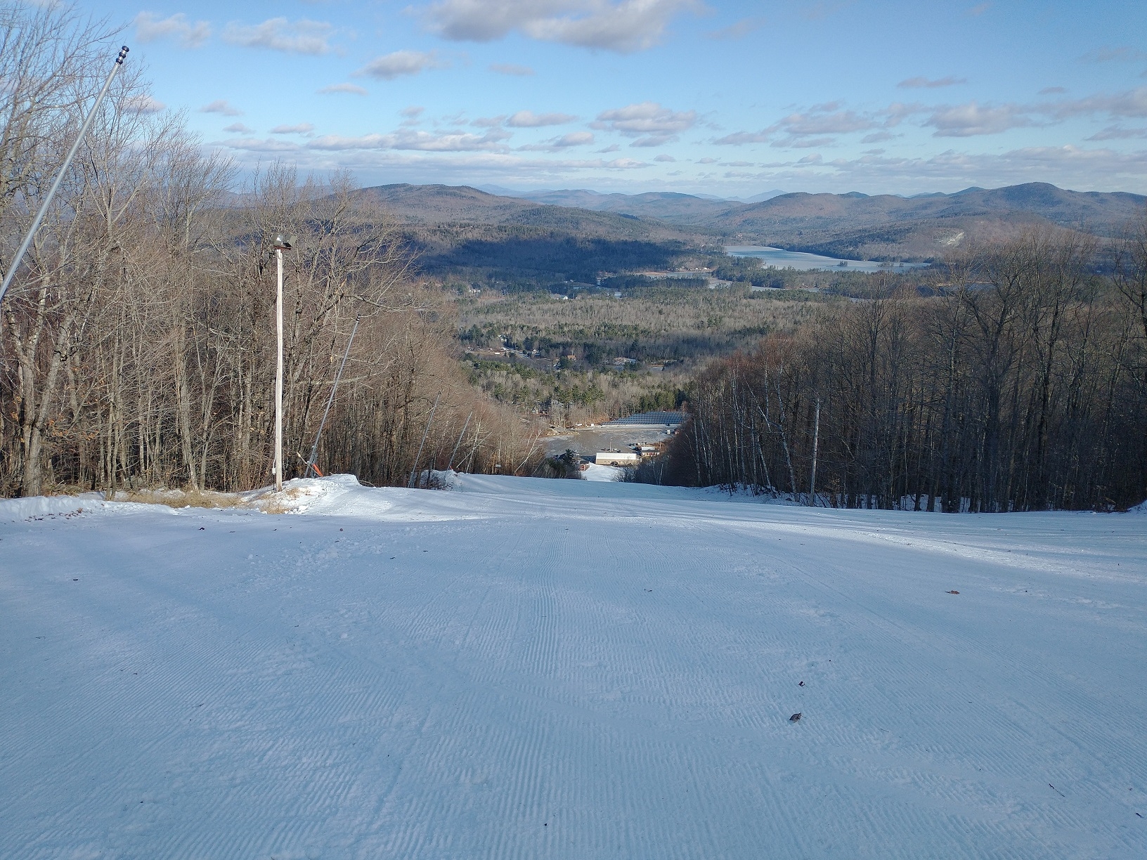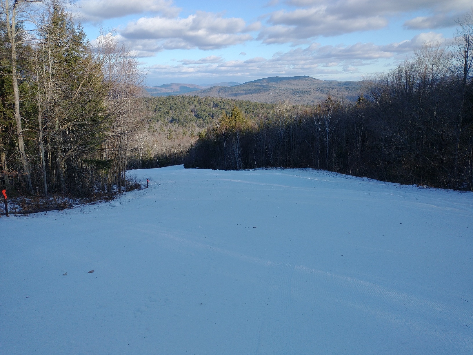 Opening day at Mount Abram! They were hoping to have Sweeper and Boris open from the summit as well as Mahoosuc Meadow on the West Side open today, but unfortunately The Way Back Machine never opened due to the wind, and there wasn't enough snow to open the T-bar. Because of this, we spend most of the day lapping the Skyline Chair and Mahoosuc Meadow. I did hike over from the top of the Skyline Chair to the top of Boris once, and it was definitely the best run of the day! The snow was firm and dense, but they did a good job grooming to create a very edgeable surface. They have made a lot of snow on open terrain and there was excellent wall-to-wall coverage. It looks like Dudley and Taylor's Treat should also be open soon. They were only charging $20 today, and this weekend will only be $30, so you have no reason not to visit if you're in the area!
