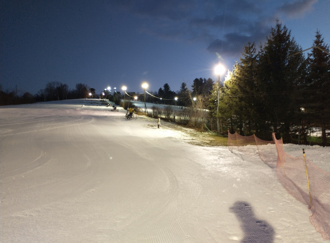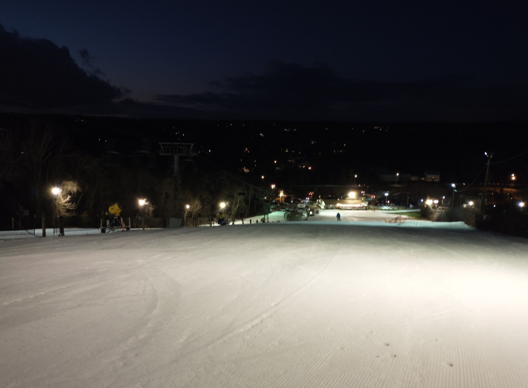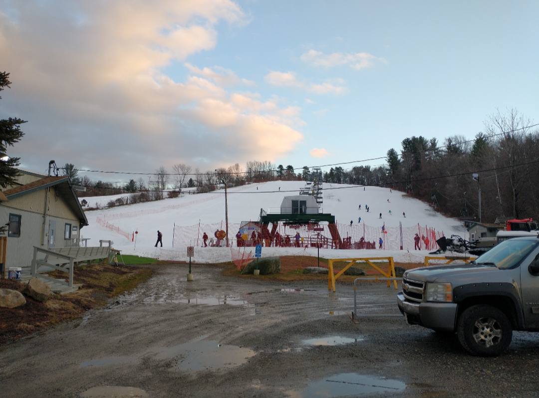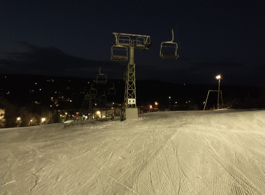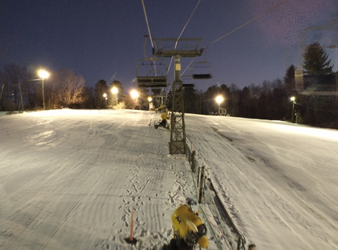 Although I grew up only an hour away, surprisingly I had never skied at Ward when they were open until yesterday. Compared to the other metro Boston ski areas, they are very aggressive with snowmaking and are currently the only one of the 4 metro Boston ski areas open. They had three slopes open, Winter's Magic & White Out from the Triple, and Dream Maker from the carpet. While the two ways down from the summit weren't much different than any other run at the metro Boston areas, they were perfect for a few hours of night skiing. Unfortunately the classic Mueller T-bar wasn't running, but the newer Partek chairlift is also quite interesting because it utilizes lattice towers from the old Mueller double. They have a very nice, although small, lodge with a full bar, and a lighted patio area outside. The attention to detail at Ward was very nice with padded chairlift seats, bars to keep children from sliding under the safety bars, and outdoor carpeting around the base area to make it easier to walk in ski boots. With affordable midweek ticket pricing, it's definitely worth a stop if you're in the Boston area!