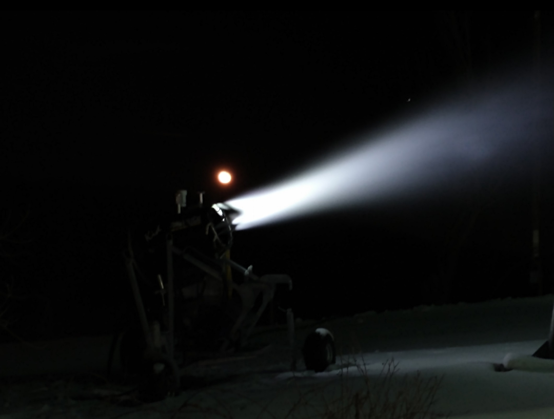 Snowmaking with the Moon in the Background (it looked more impressive in person)