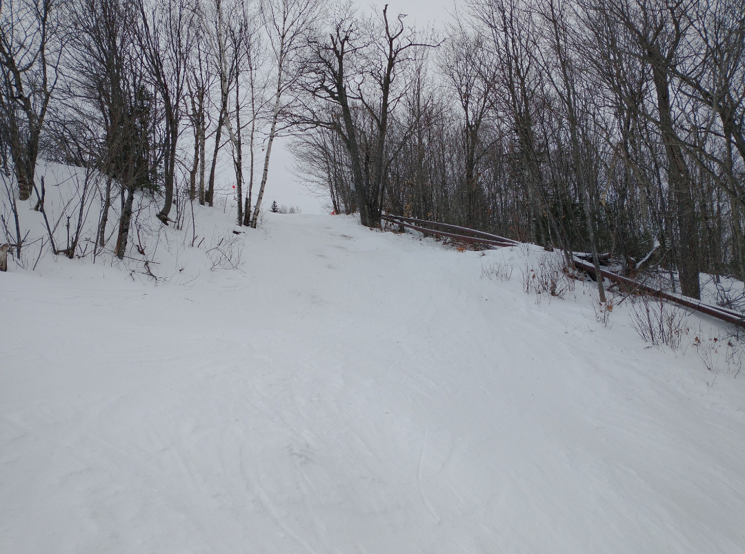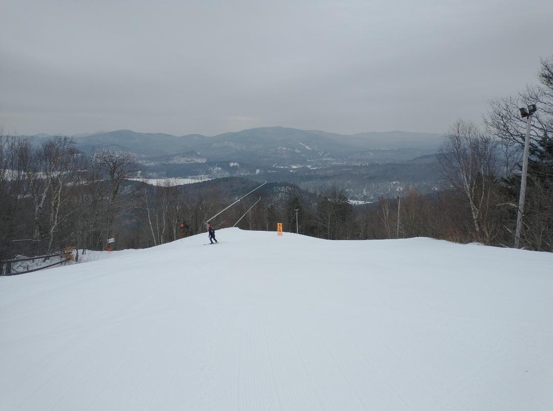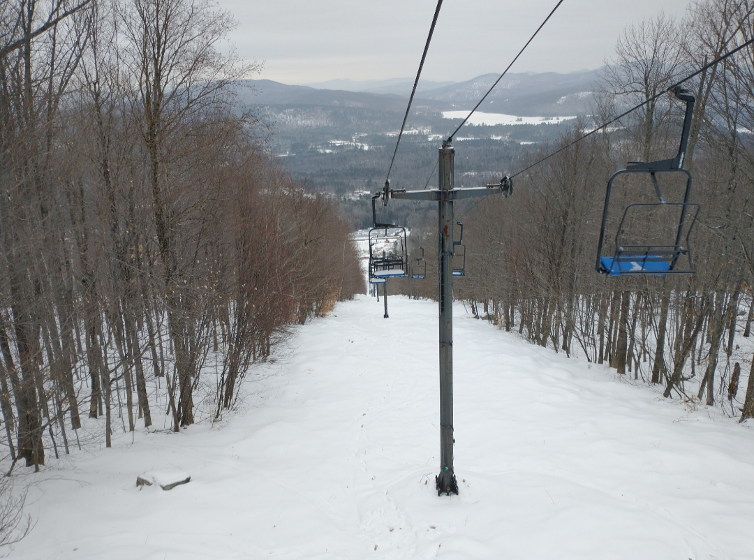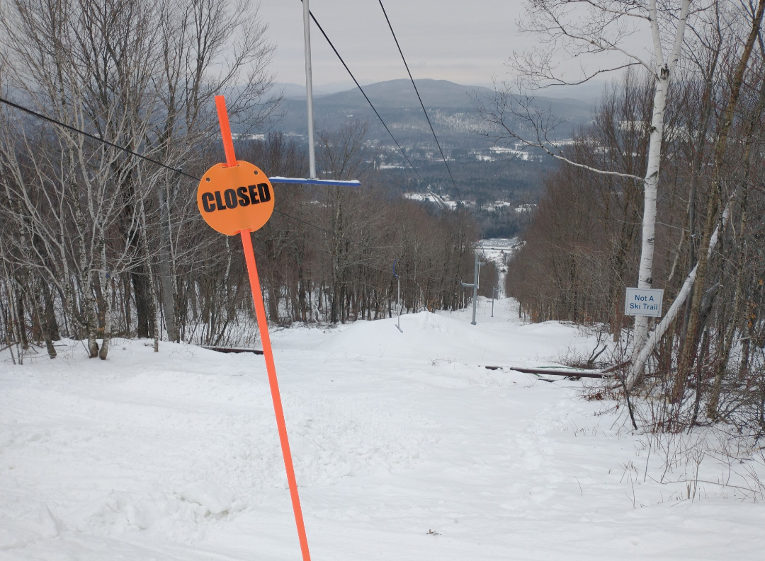 Today was the best day of my season so far! Abram had about half of their terrain open today, much on natural snow. Fearless Leader, Boris, Dudley, Taylor's Treat, Egomaineah, Bullwinkle's Horn, and Mahoosuc Meadow had excellent snow asking coverage and very well groomed packed powder. The many natural snow trails that were open had thin cover in spots and much firmer snow, but they were very skiable. They were running both chairlifts, which were ski-on all day with very light crowds. Thanks to the lack of crowds, and the relatively extensive amount of terrain open, nothing got scraped off at all.