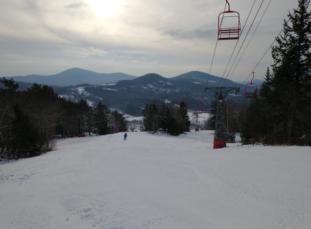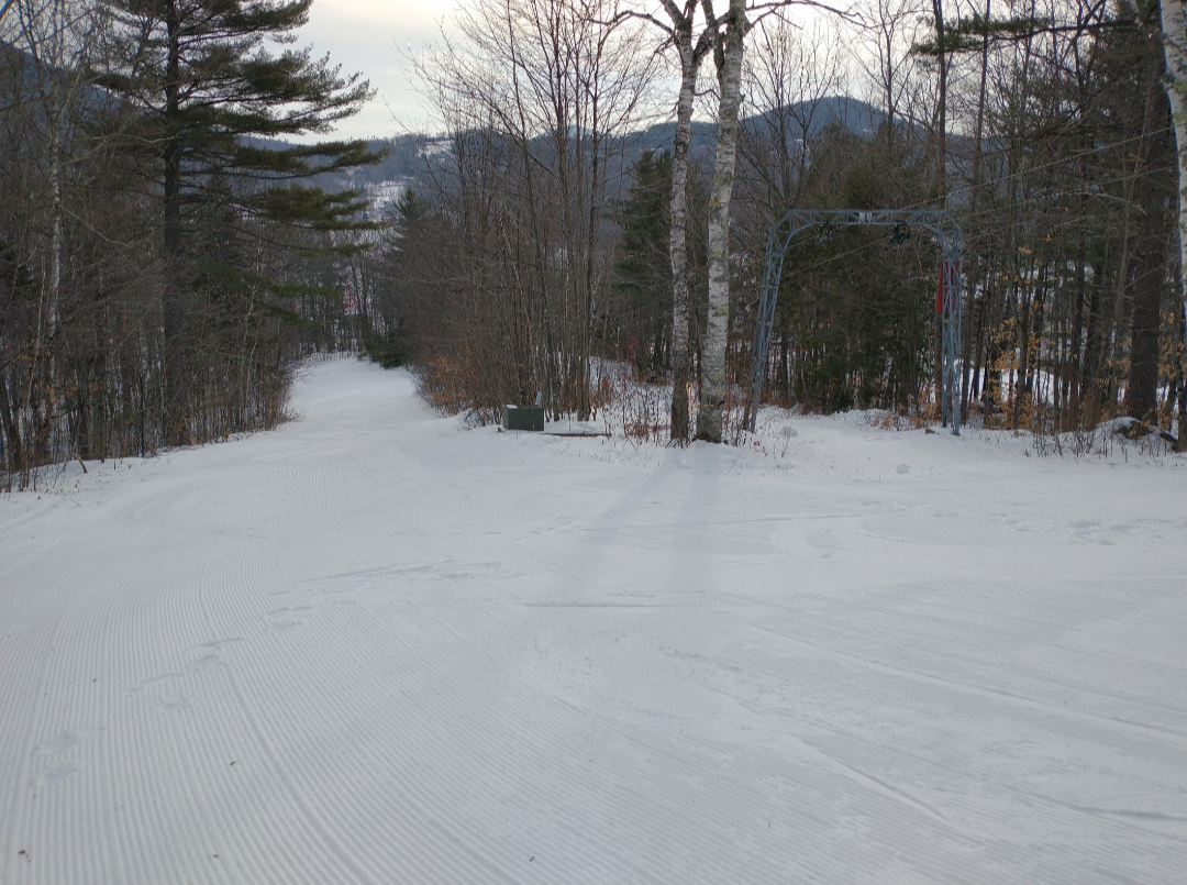 Today was a beautiful bluebird day at Black! The terrain was quite limited, with Maple Slalom Chute > Valley View > Bob-A-Link from the mid-station of the double, and Jubilee & Ninow from the Platter Pull. However, the snow was excellent packed powder, and the weather was just about perfect. Crowds were relatively light, but there was sometimes a short line for the double and platter. They were pushing out whales and started to make more snow on some East Bowl terrain which looks like it may be ready for this weekend. Some limited natural snow terrain, such as part of Sun Valley and Outback were open with very thin cover.