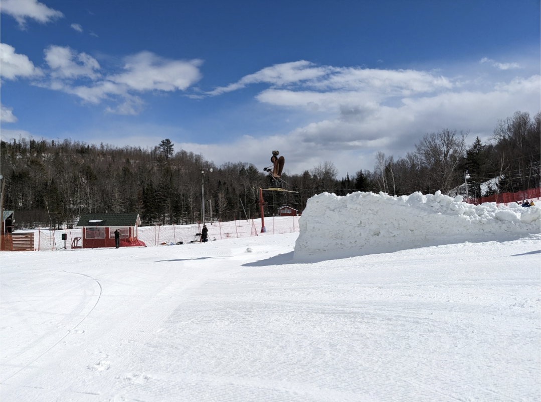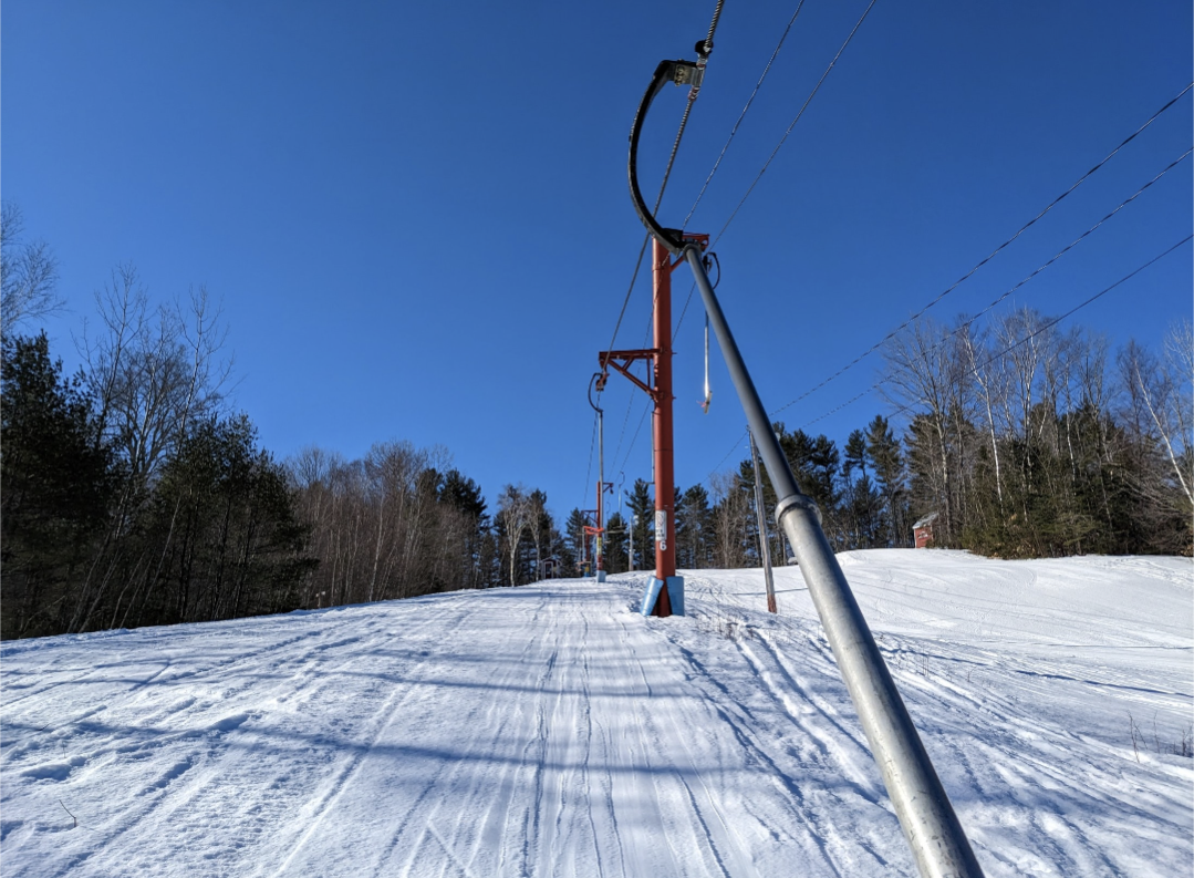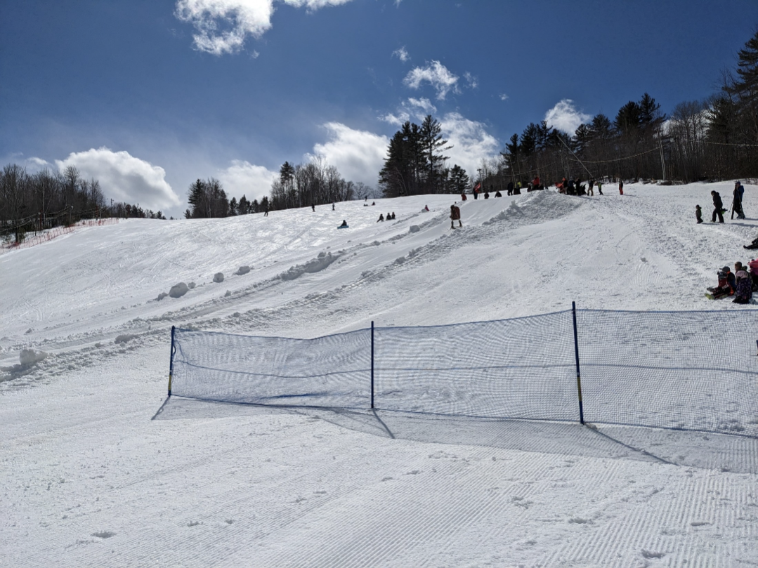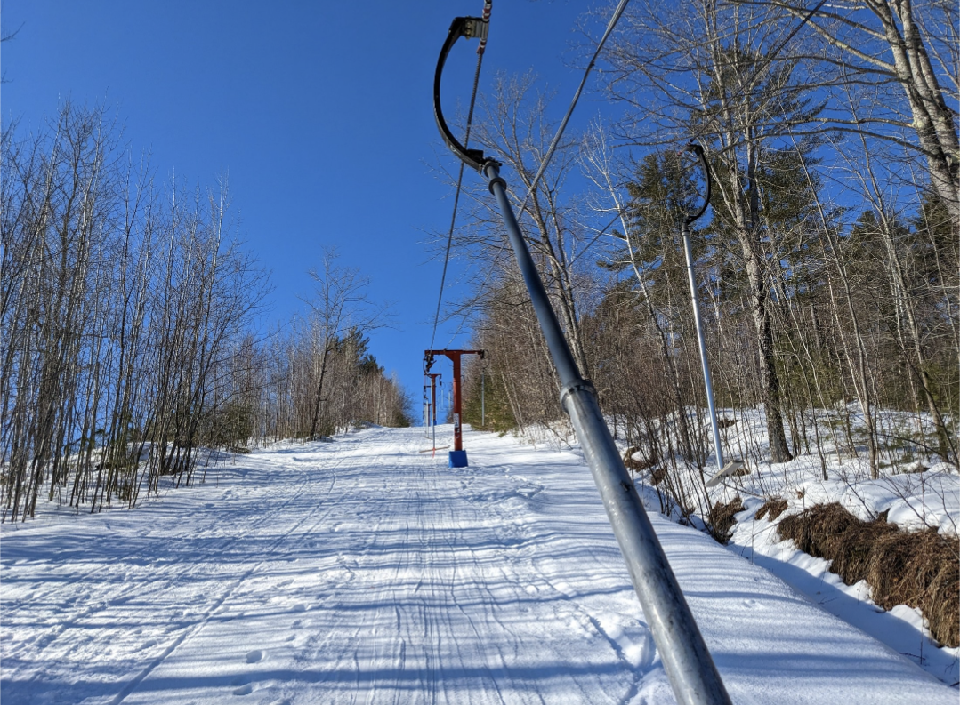 Lift 1 closed around noon, due to the dummy downhill taking place in that area. That was a fun event to watch, and they also had a delicious homemade buffet at lunch. There were no lift lines in the morning, but lines were usually a few minutes long in the afternoon, due to only Lift 2 being open. Snow coverage is still excellent with no bare patches, except where there are wet areas, and they should have no problem making it to next weekend, if the weather is nice enough to open.