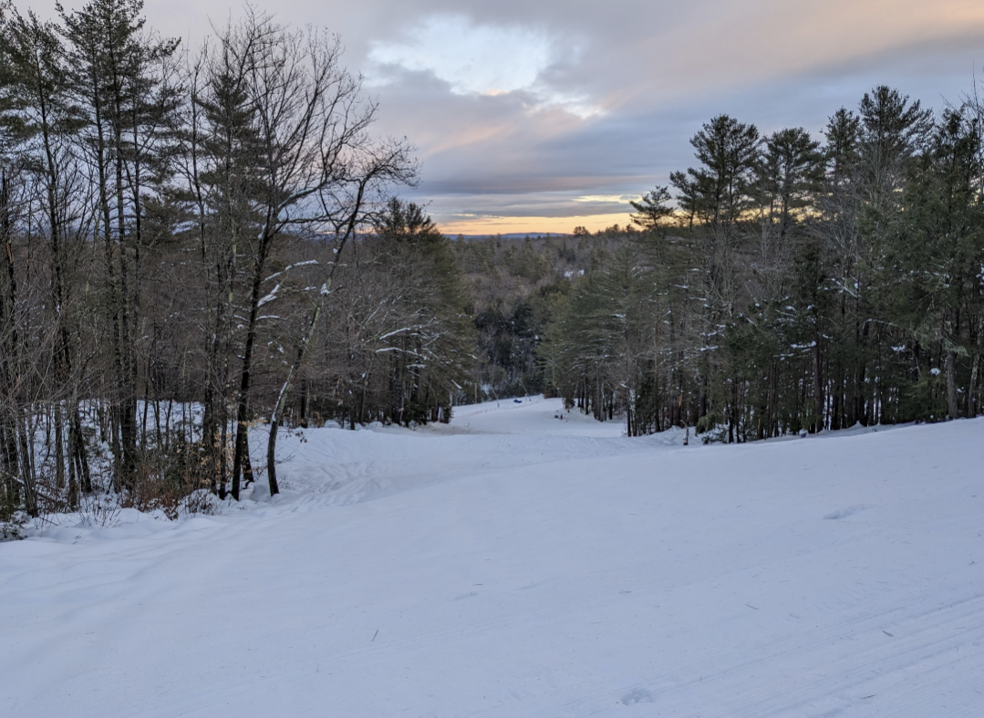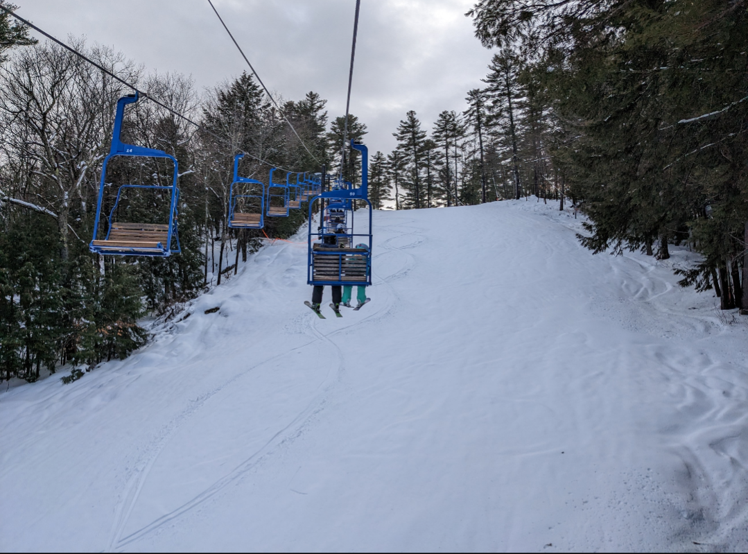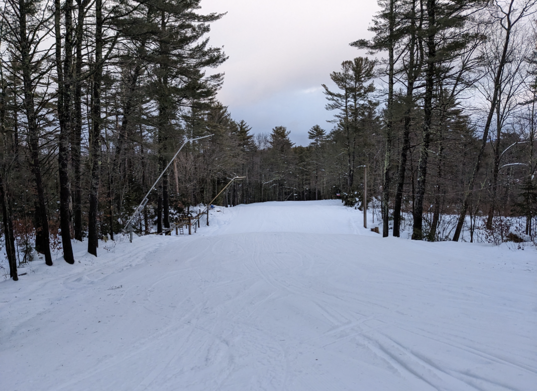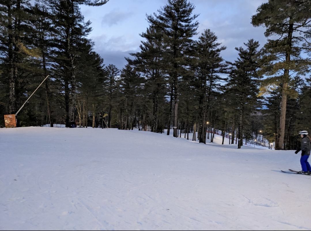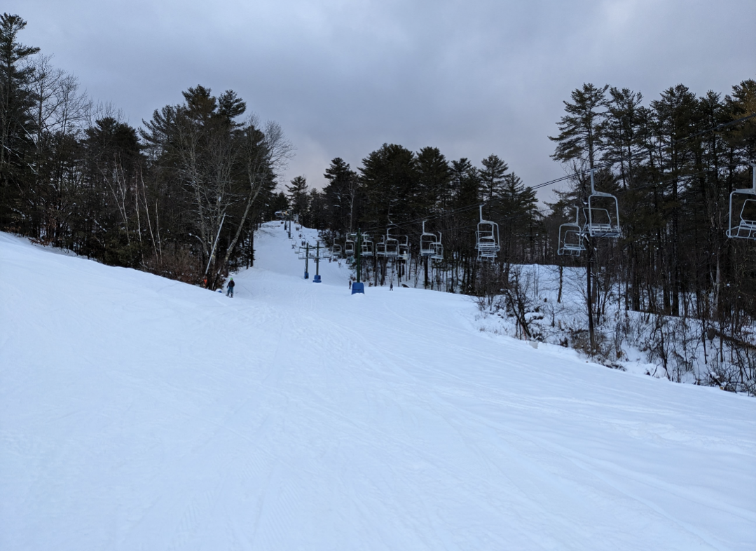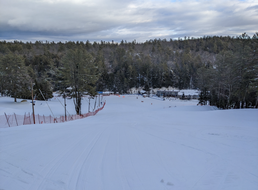 Our original plan was to go to Hermon, but they were closed for the day, so we ended up at Lost Valley. They had received around 6 inches of new snow, and it was wet snow, but better than expected after the rain. Both chairs and all of the snowmaking/night skiing terrain was open, except for Otter Slide and the last section of Squirrel Run. Bull Moose, Skunk, Beaver, Fisher, Porcupine, and Bear were left ungroomed and were quite fun to ski. As usual, it was quite busy on the mountain and in the lodge, but their efficient lift system kept people moving, and there was never a wait of more than a minute or two for either chairlift. Things started freezing up near the end of the night, and there were some pretty epic wipeouts when unsuspecting skiers would end up in an area of untracked snow that now had crust on it. One new feature this year is a food truck at the bottom of Chair 2, which we bought a fried dough from. Lost Valley offers a surprising variety of terrain for a smaller area, and is always a fun place to ski.