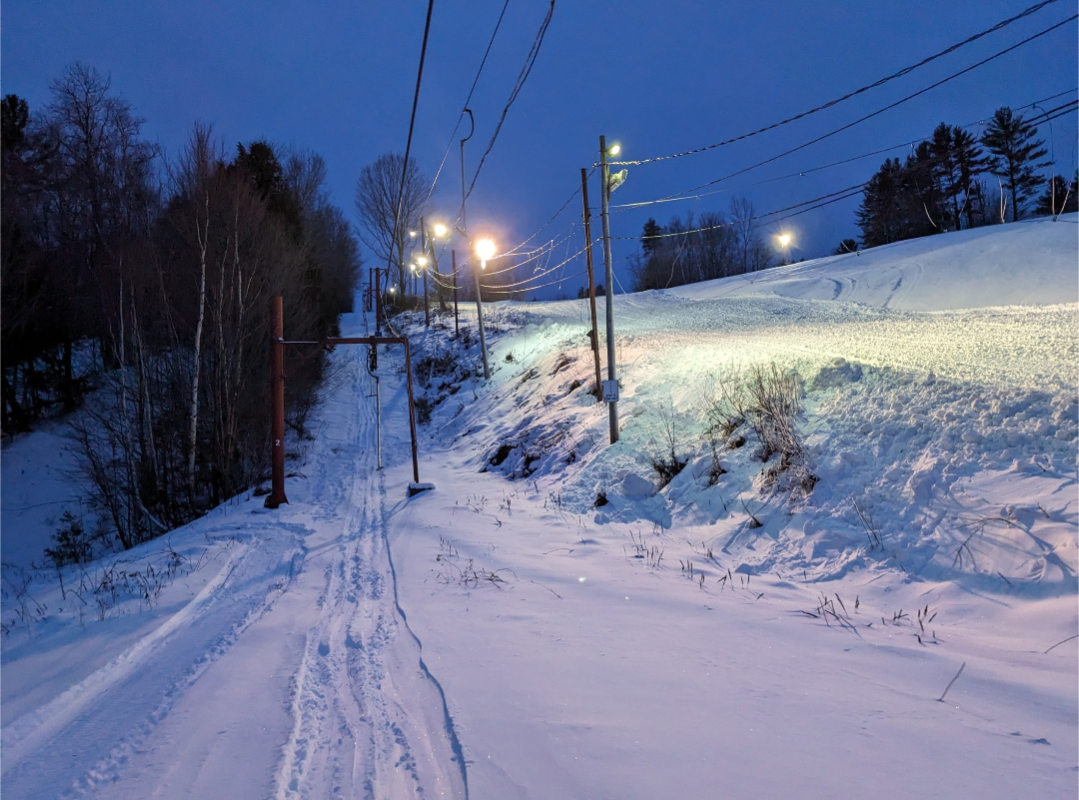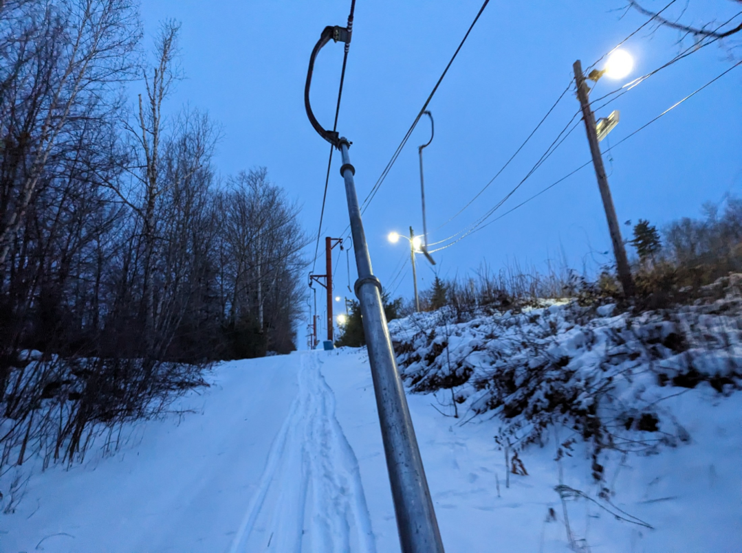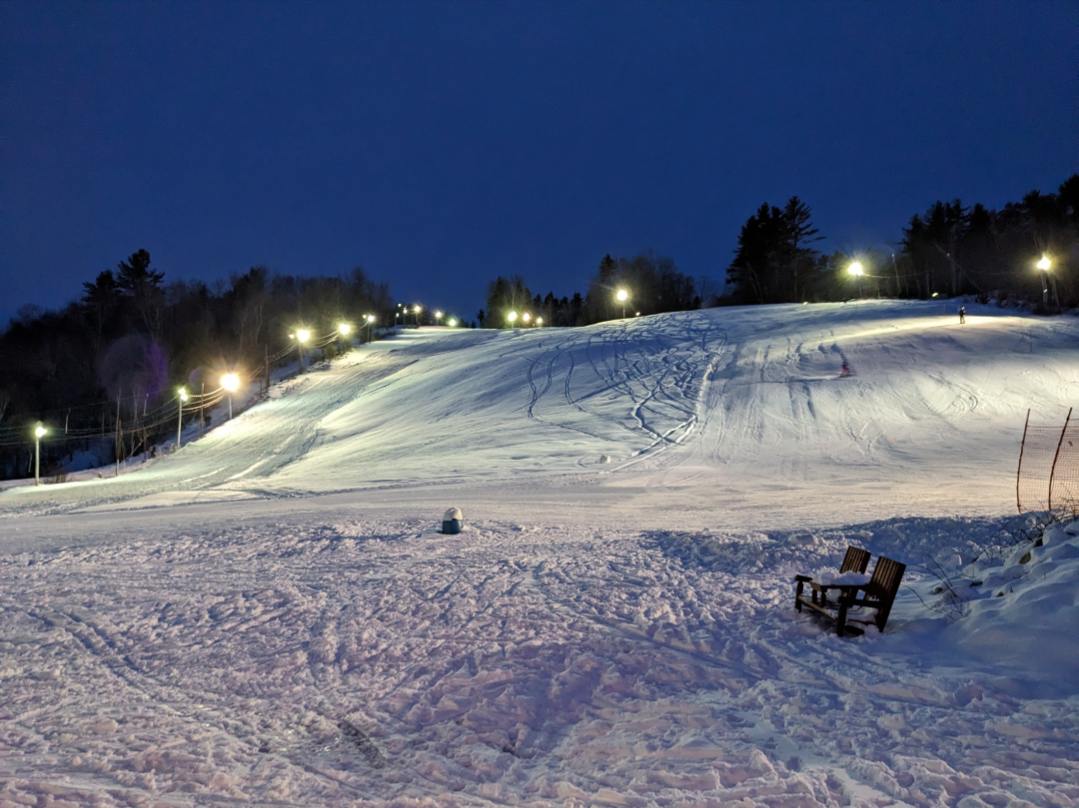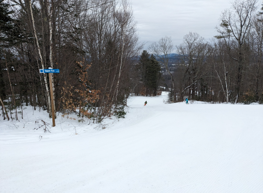 Titcomb hadn't been open since Sunday's storm, so there was plenty of leftover powder to ski today! They received about half a foot of new snow, which drastically improved conditions across the mountain. Upper Fox & The Main had opened up, and there was excellent packed powder conditions on all groomed trails. The jughandle to skier's right of Bunny and the wide slope between The Main and Otter Slide were open with ungroomed natural snow. There was lots of untracked powder to be had on The Main, even though it was in plain sight for everyone to see. As usual for a weeknight, the mountain was quite busy, and the line for T-Bar 2 was over 5 minutes long during the 4:00 hour. During this time, they opened up T-Bar 1 to spread people out a bit. Also like usual, T-Bar 1 had no lines during the time that it was open. It was great to finally be skiing quality dry snow, but unfortunately it looks like it will be short lived with the weather coming in tomorrow.