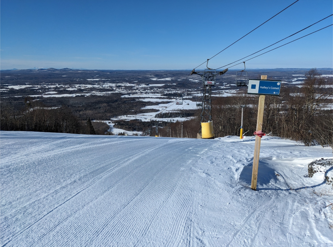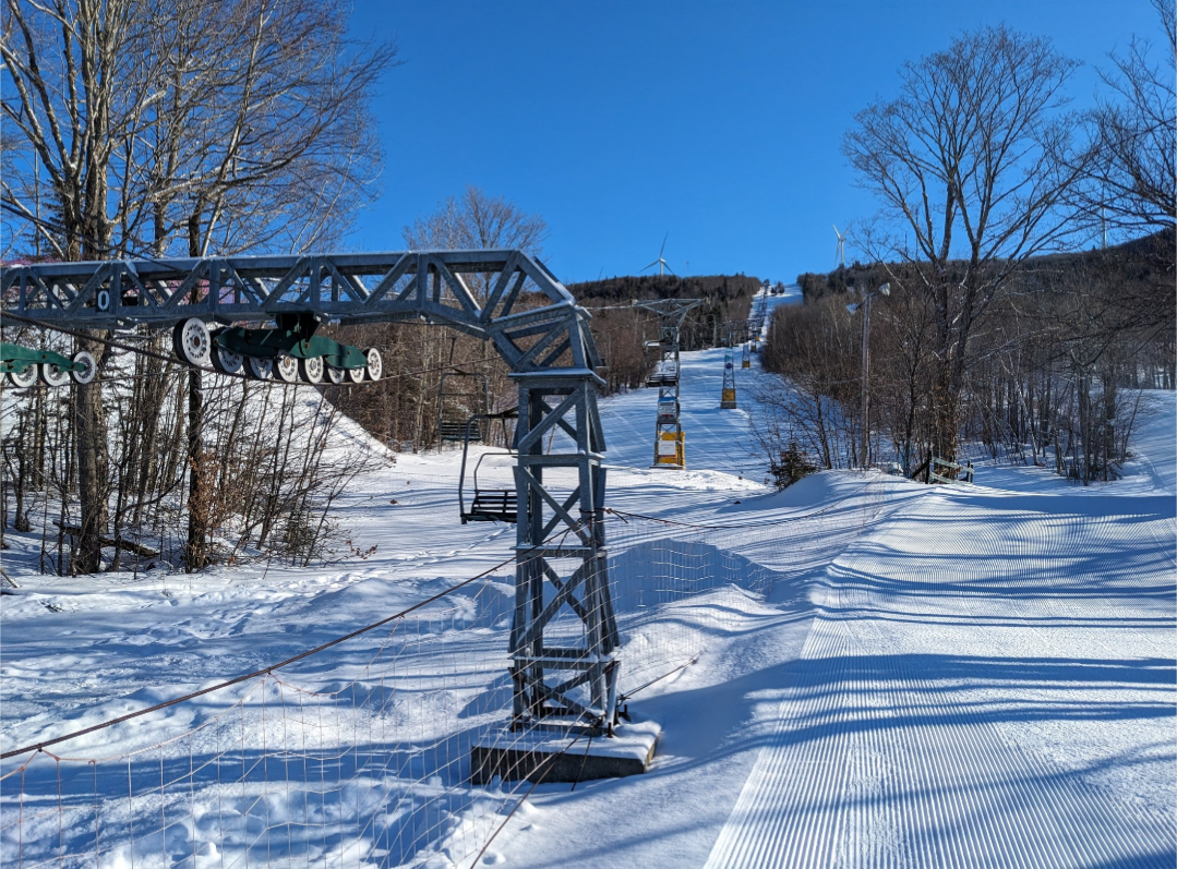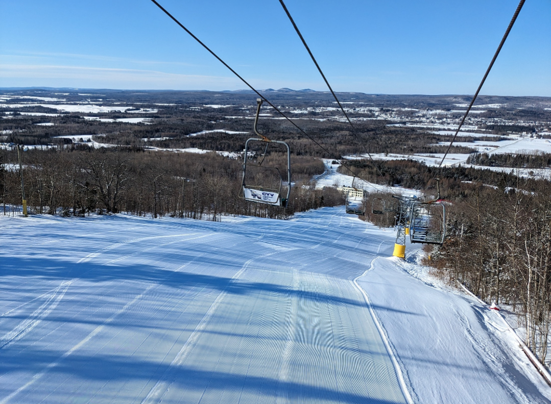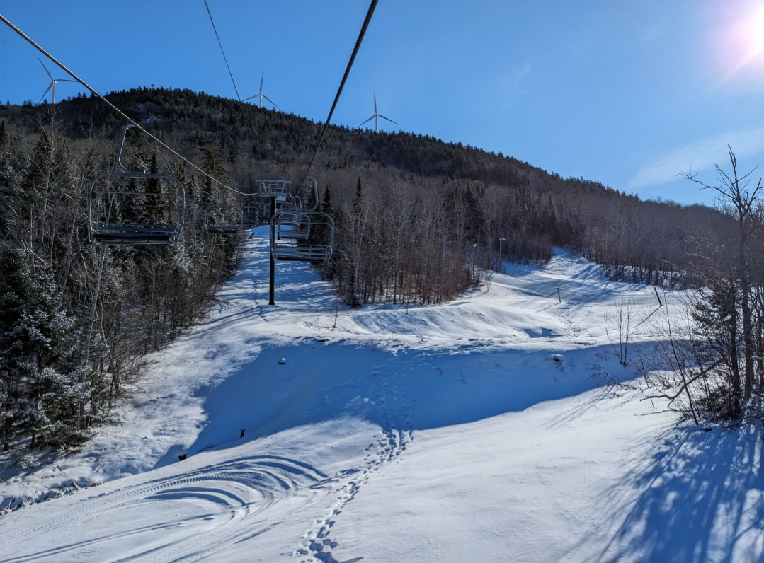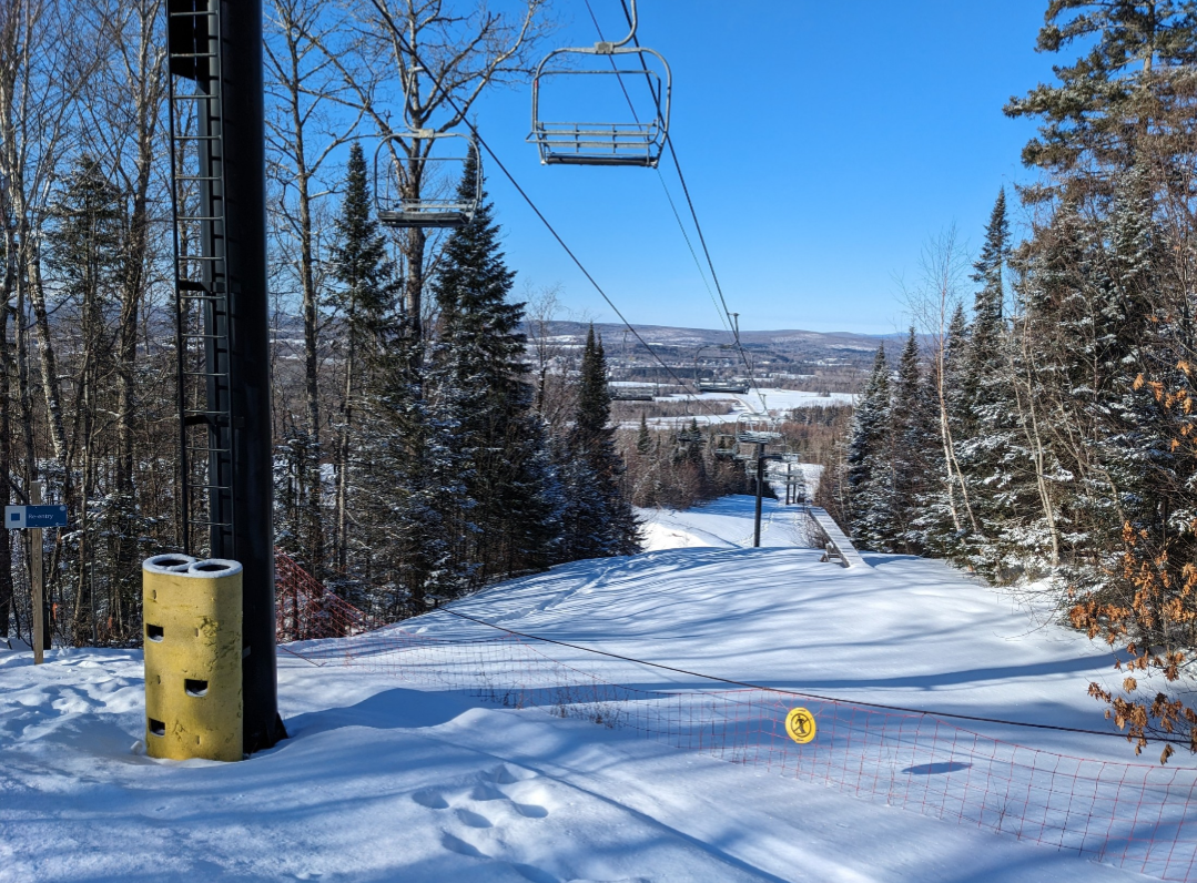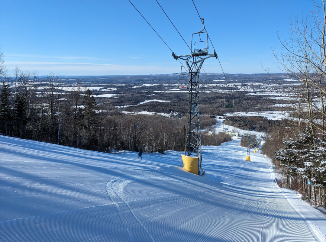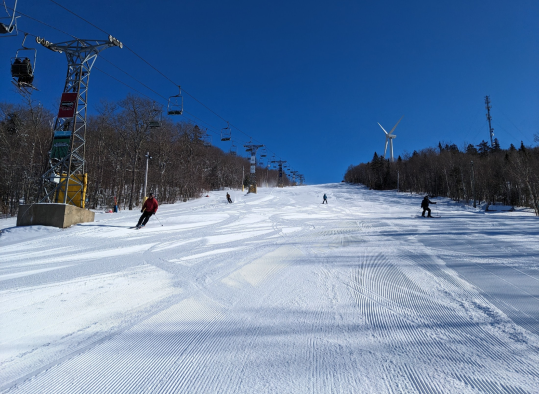 This was our first time at BigRock, and we had a fun time exploring the mountain. Off of the Apollo Triple, there are a few nice easier cruising runs. From the summit, there are three wide trails, and a variety of narrower trails and glades. Galaxy was one trail which I found especially fun. It's a narrow trail with banked turns which winds through the forest. The steep advanced terrain to skier's left looked very fun, and I definitely plan on returning to ski that part of the mountain. It was nice to be able to ride the Gemini Double before it gets removed this summer. It's Maine's last remaining lattice tower lift, and it will be sad to see it go.