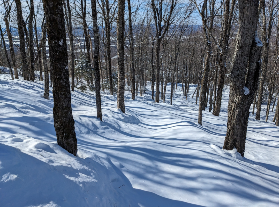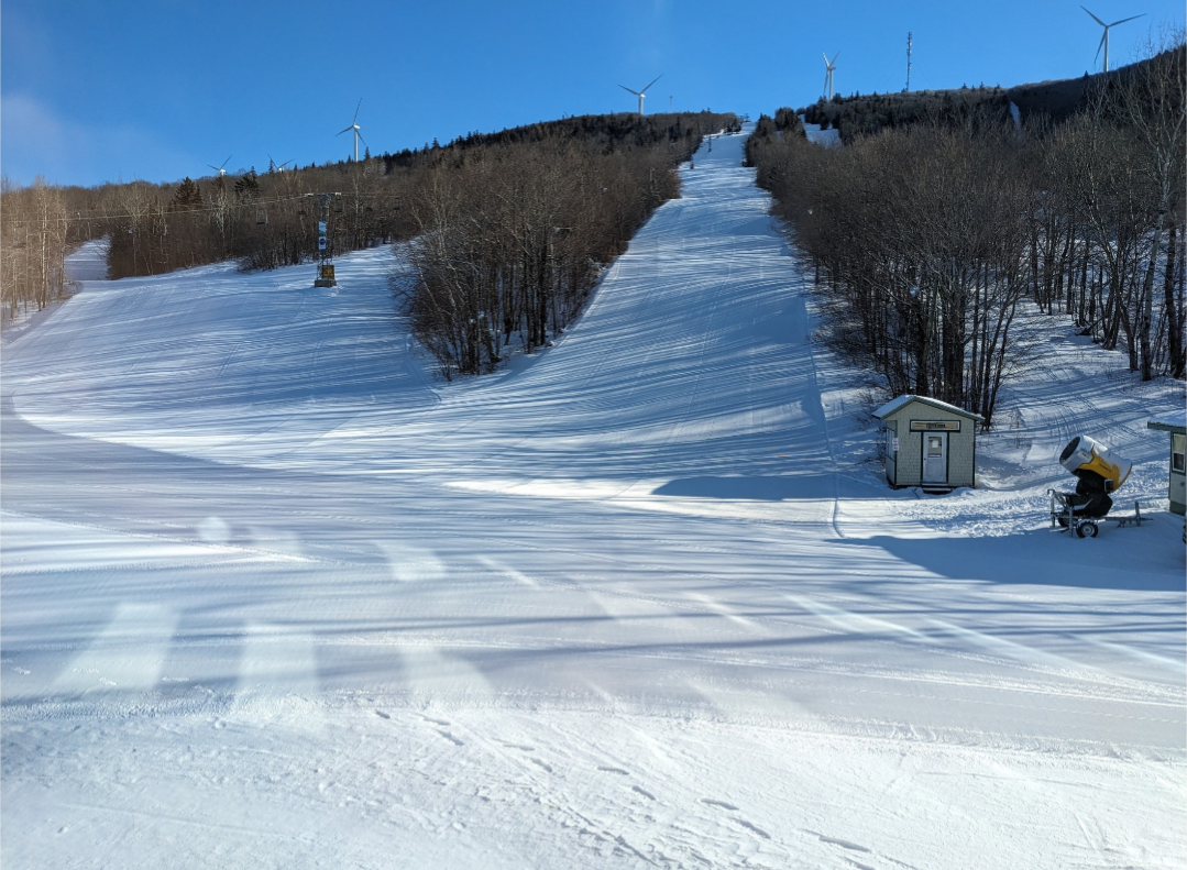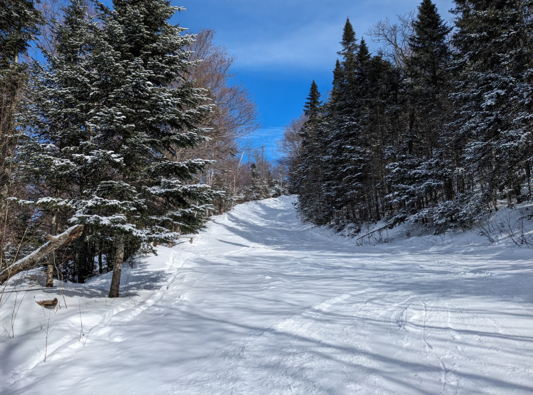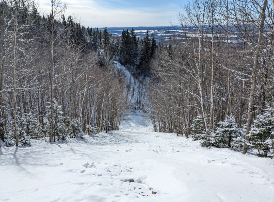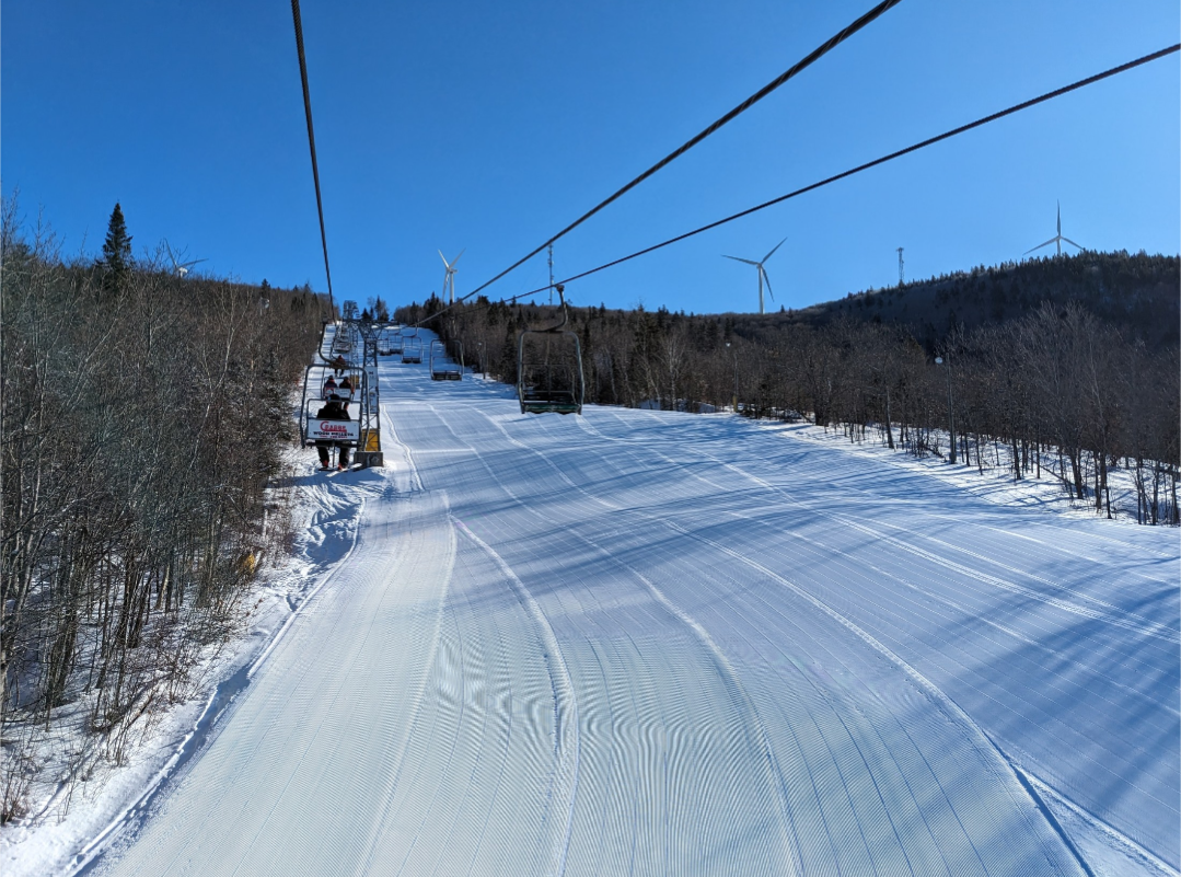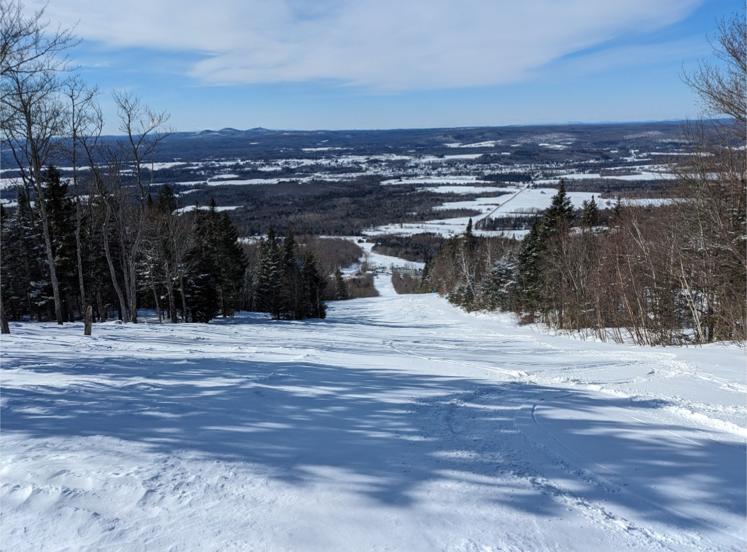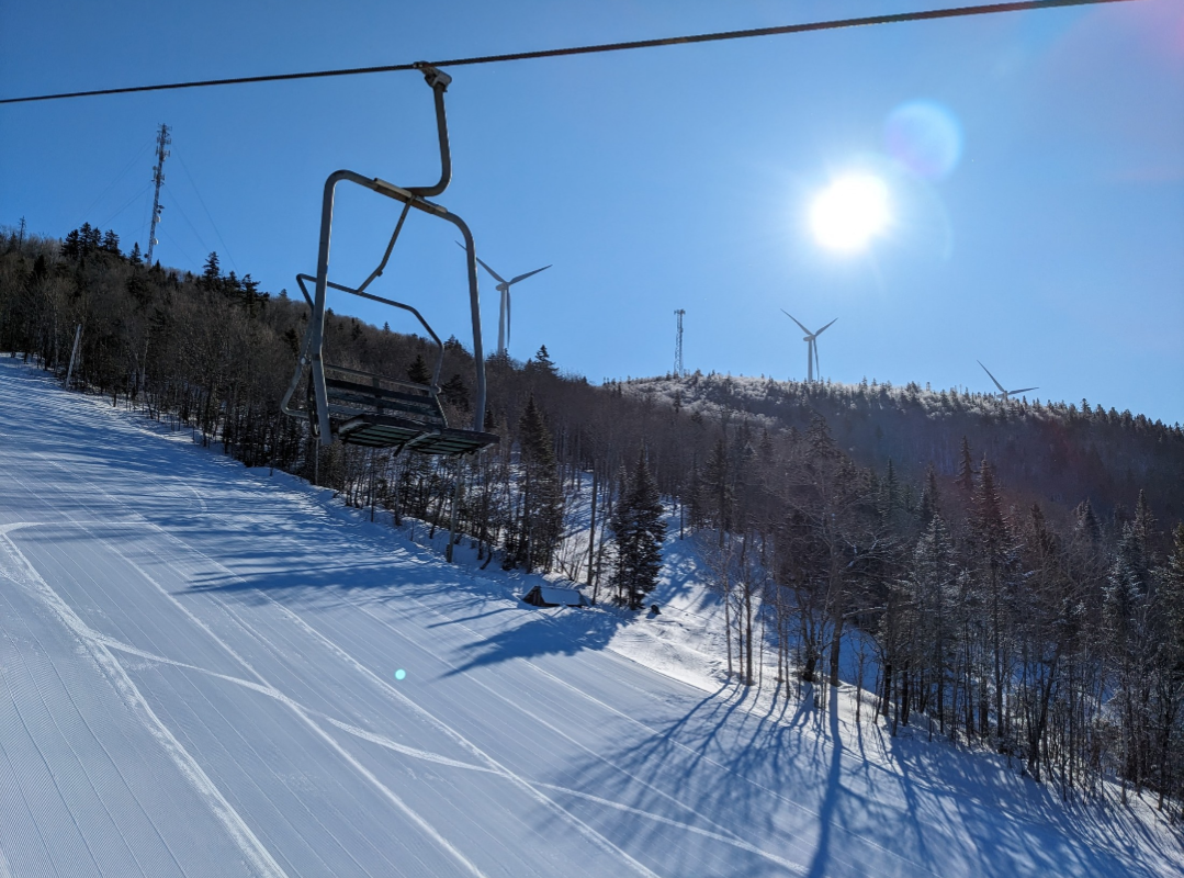 This was our first time at BigRock, and we had a fun time exploring the mountain. Off of the Apollo Triple, there are a few nice easier cruising runs. From the summit, there are three wide trails, and a variety of narrower trails and glades. Galaxy was one trail which I found especially fun. It's a narrow trail with banked turns which winds through the forest. The steep advanced terrain to skier's left looked very fun, and I definitely plan on returning to ski that part of the mountain. It was nice to be able to ride the Gemini Double before it gets removed this summer. It's Maine's last remaining lattice tower lift, and it will be sad to see it go.