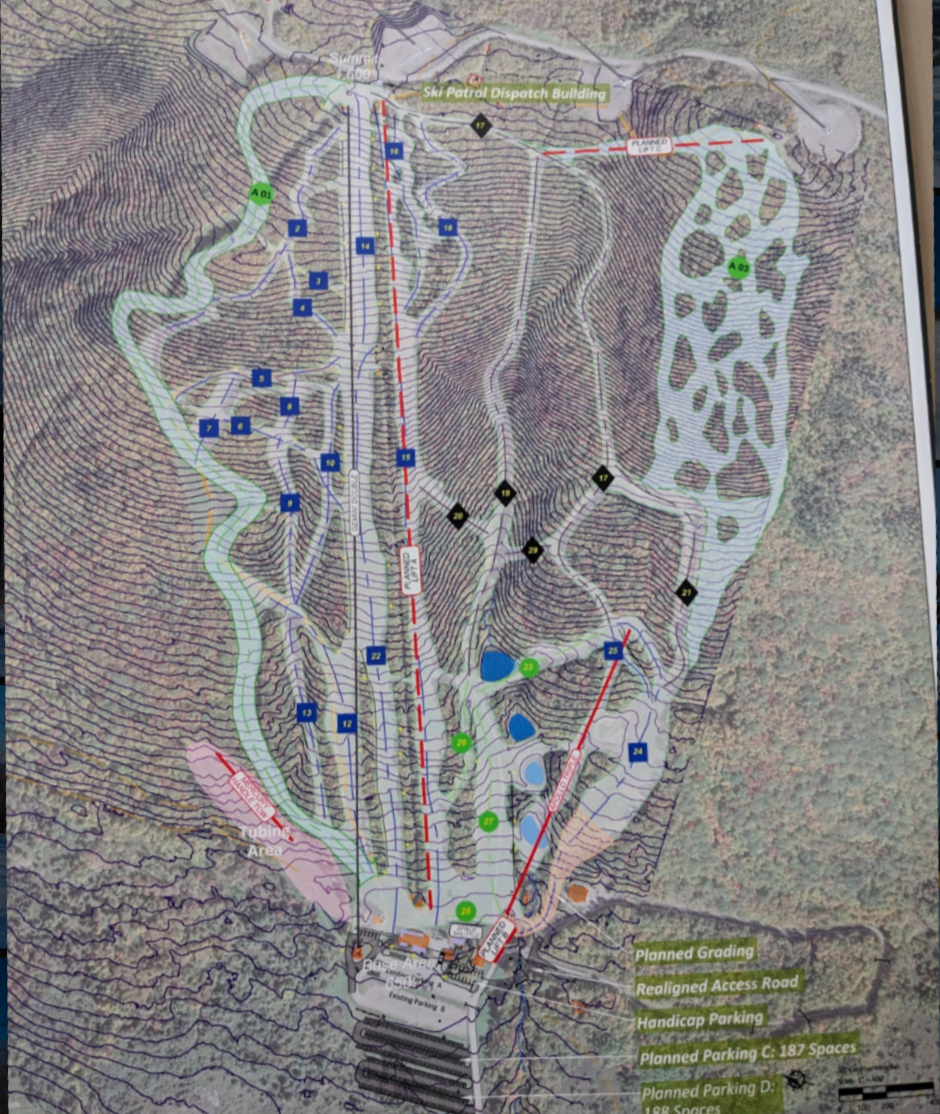 A map in the base lodge showing a proposed expansion to the south with a new lift and trails