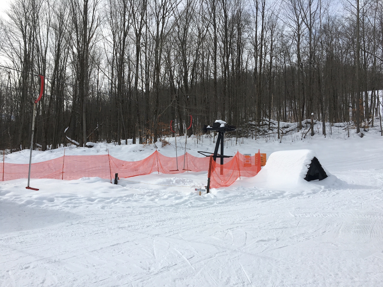 On the other side of the base area is the Jelly Roll slope and train park served by a Hall J-Bar. This lift only runs about 1/3 of the way up the hill with 100' of vertical.