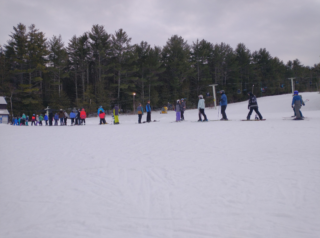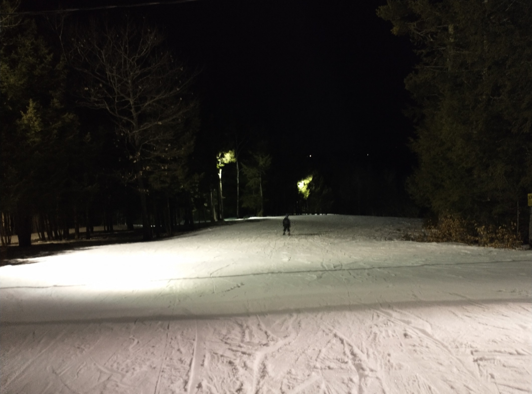 Even with the recent warm temperatures, Hermon still had a good bit of natural snow as of yesterday. Almost every trail was open, although the unlit ones got closed as it became dark. The natural terrain there is very fun, and I hadn't gotten to ski much of it previously. It was around 40 degrees, so the snow was soft spring-like snow in most places. It was very busy with lift lines reaching 5-7 minutes long, although there were little to no lines for the last hour.