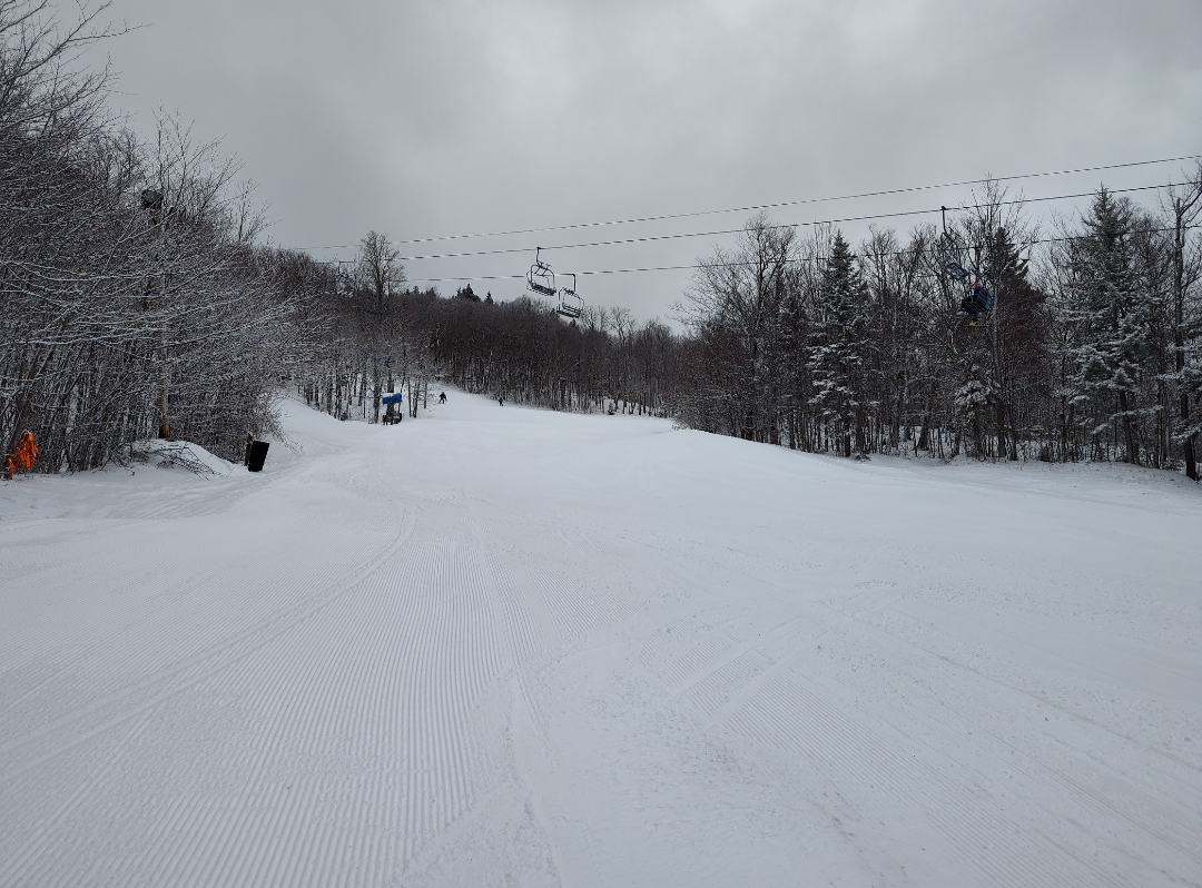 A little new snow refreshed conditions overnight with a trace at the base and two inches at the summit. Lower Rapid was newly opened, and snowmaking efforts continue on Alalgash and Saint John. Conditions were excellent packed powder to start the day, although Swift, and Androscoggin did get rather scraped off a few hours in. Upper Rapid, Kennebec, and Upper Sunday had great conditions all day long!