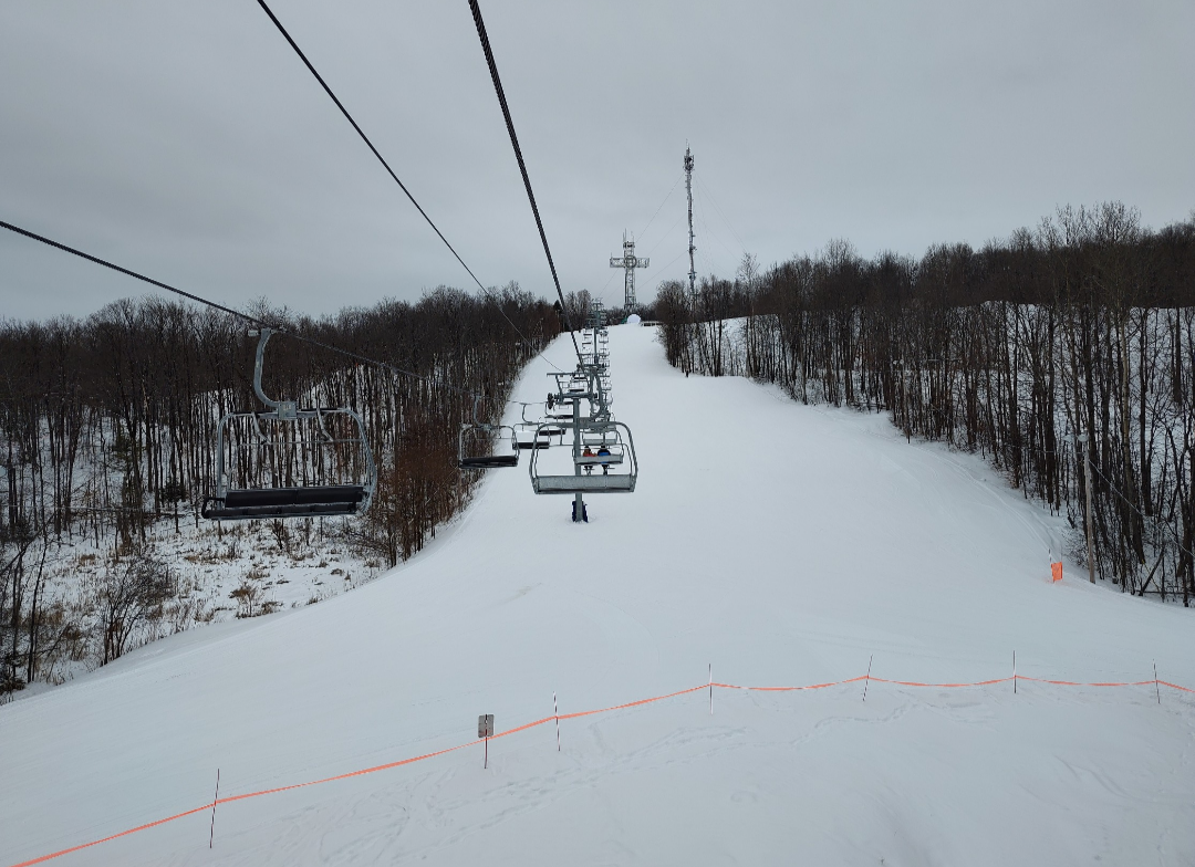 All of the trails, except two short runs that rely on natural snow (3A & 3B) were open and one glade was open (1C). Most of the trails had a perfectly groomed packed powder surface, except for 4A which was left natural and had some powder on it. Crowds were light during the afternoon and the chairlift was usually ski-on. They seem to take great pride in their grooming, and there wasn't a single patch of ice to be found anywhere on the mountain, even in higher traffic areas.